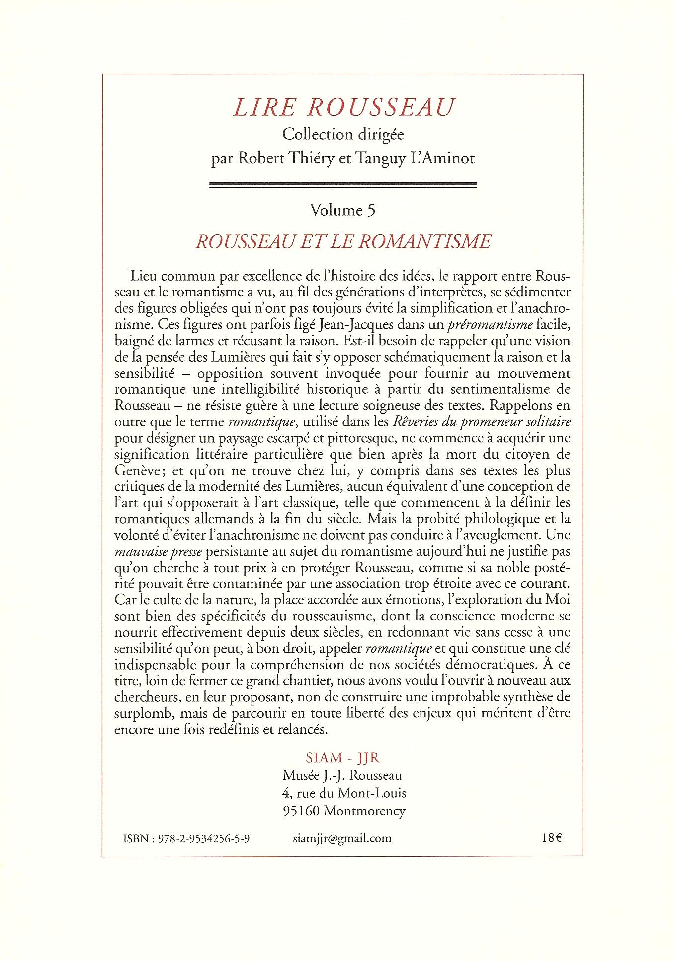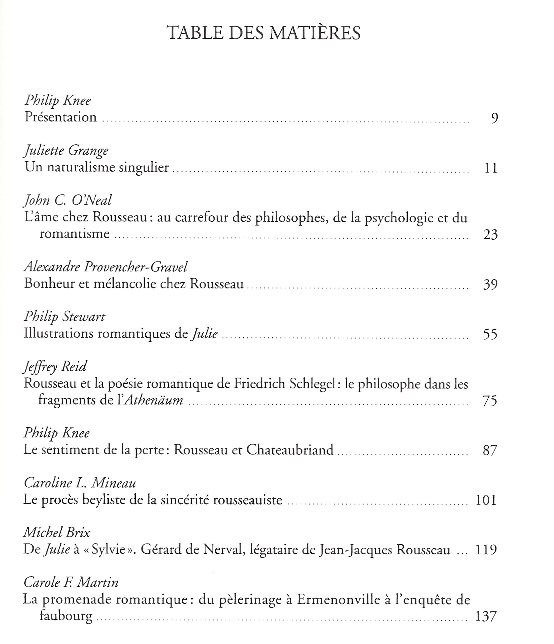 - Le destin des textes les plus pertinents de Rousseau ( Les Rêveries, la Profession de foi du Vicaire Savoyard, La Nouvelle Héloïse) ;