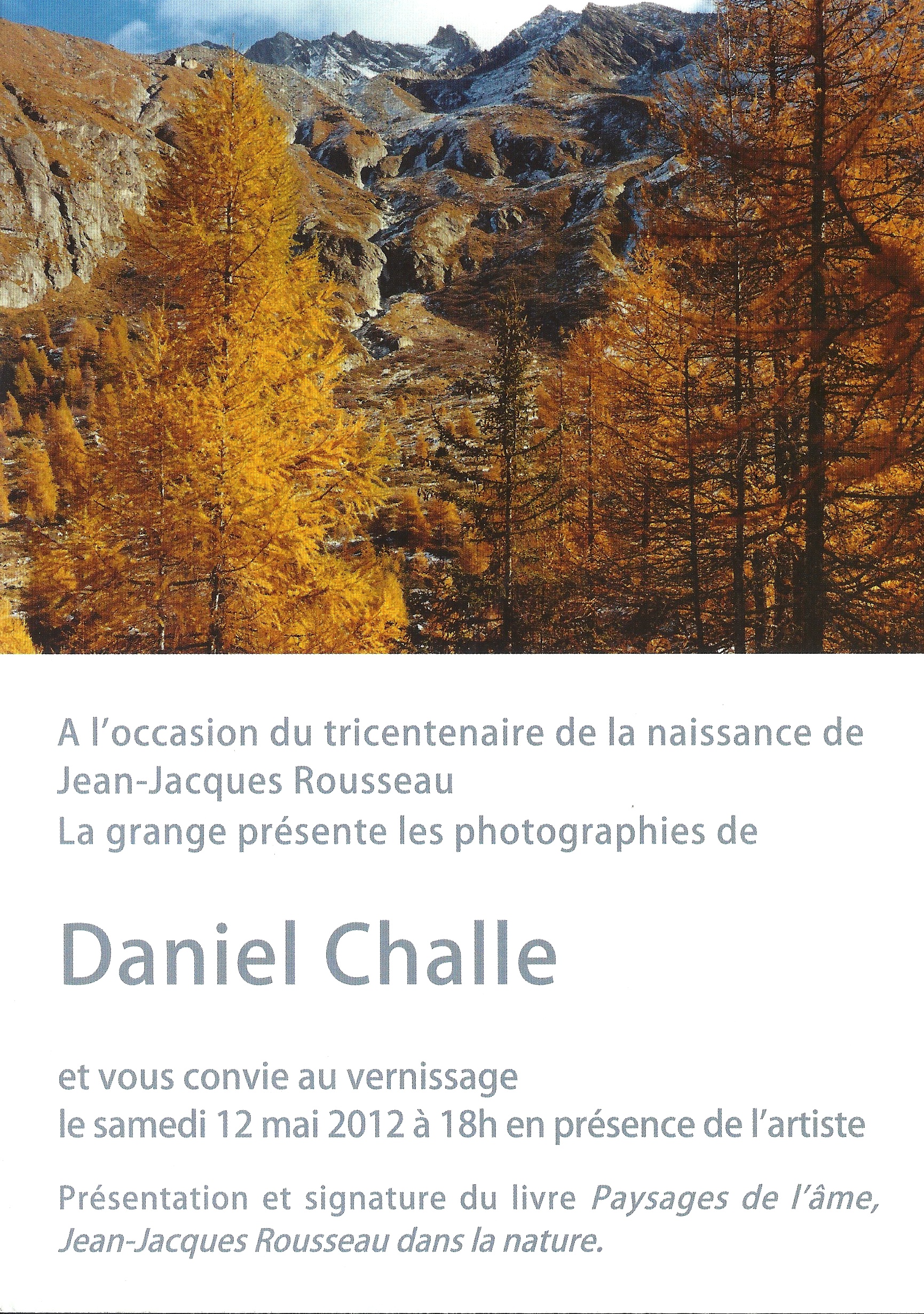 A l’occasion du tricentenaire de la naissance de Jean‐Jacques Rousseau et des manifestations associées à cet événement, le Conseil Général de l’Oise et Diaphane ont passé une commande au photographe Daniel Challe pour aller à la rencontre en 2012 des paysages de l’écrivain, retrouver les lieux liés à la nature que Rousseau affectionnait.