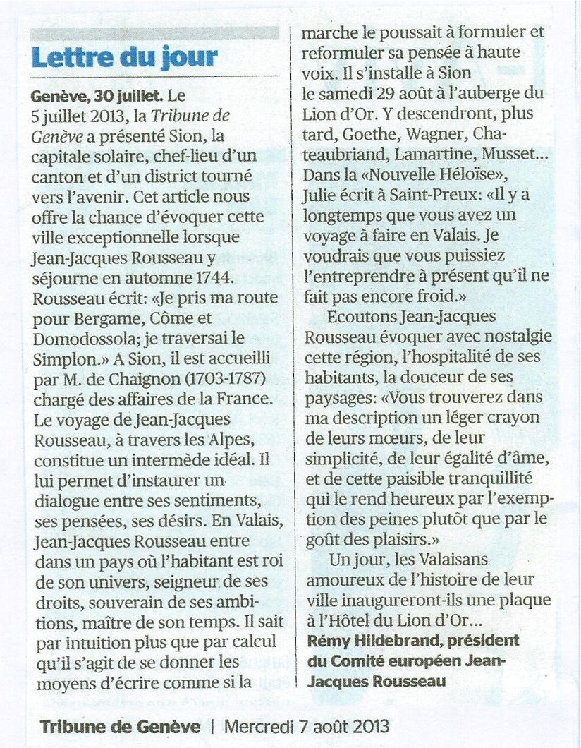 Nous remercions Monsieur Remy Hildebrand, Président du Comité Européen Jean-Jacques Rousseau (CEJJR), pour sa participation à cette publication extraite de la Lettre N°5 du CEJJR.