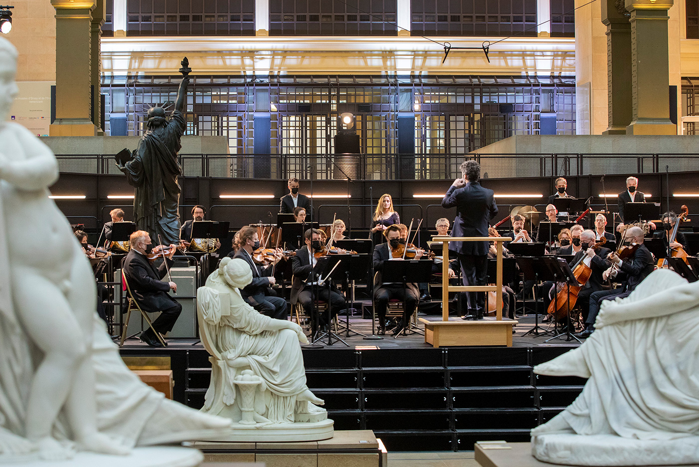 | AVEC L’ORCHESTRE DE PARIS ET SABINE DEVIEILHE L’Orchestre de Paris, dirigé par Pablo Heras‑Casado, et la soprano Sabine Devieilhe vous donnent rendez-vous dans la nef du musée d’Orsay, puis dans la galerie des impressionnistes, pour un concert exceptionnel, hommage au compositeur Maurice Ravel. Au programme de cette odyssée musicale : son incontournable Boléro, sa fascinante orchestration des Tableaux d’une exposition de Moussorgski, clin d’œil aux émotions ressenties lors d’une promenade muséale, et les Cinq mélodies populaires grecques, invitation au folklore des noces. Ce concert, qui s’inscrit dans le cadre du partenariat avec l’Orchestre de Paris, fait partie d’#OrsayLive, programmation musicale en ligne du musée d’Orsay. Diffusion samedi 1er mai à partir de 20h30 sur le site web du musée d’Orsay, francetélévisions, Philharmonie Live |