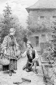 J’arrivai donc exactement à l’heure. De tout loin je regardais si je ne la verrais pas sur le chemin; le coeur me battait de plus en plus à mesure que j’approchais. J’arrive essoufflé, car j’avais quitté ma voiture en ville: je ne vois personne dans la cour, sur la porte, à la fenêtre; je commence à me troubler, je redoute quelque accident. J’entre; tout est tranquille; des ouvriers goûtaient dans la cuisine: du reste, aucun apprêt. La servante parut surprise de me voir; elle ignorait que je dusse arriver. Je monte, je la vois enfin, cette chère maman, si tendrement, si vivement, si purement aimée; j’accours, je m’élance à ses pieds. Retour de Rousseau aux Charmettes Ah! te voilà! petit, me dit-elle en m’embrassant; as-tu fait bon voyage? comment te portes-tu? Cet accueil m’interdit un peu. Je lui demandai si elle n’avait pas reçu ma lettre. Elle me dit que oui. J’aurais cru que non, lui dis-je; et l’éclaircissement finit là. Un jeune homme était avec elle. Je le connaissais pour l’avoir vu déjà dans la maison avant mon départ; mais cette fois il y paraissait établi, il l’était. Bref, je trouvai ma place prise.