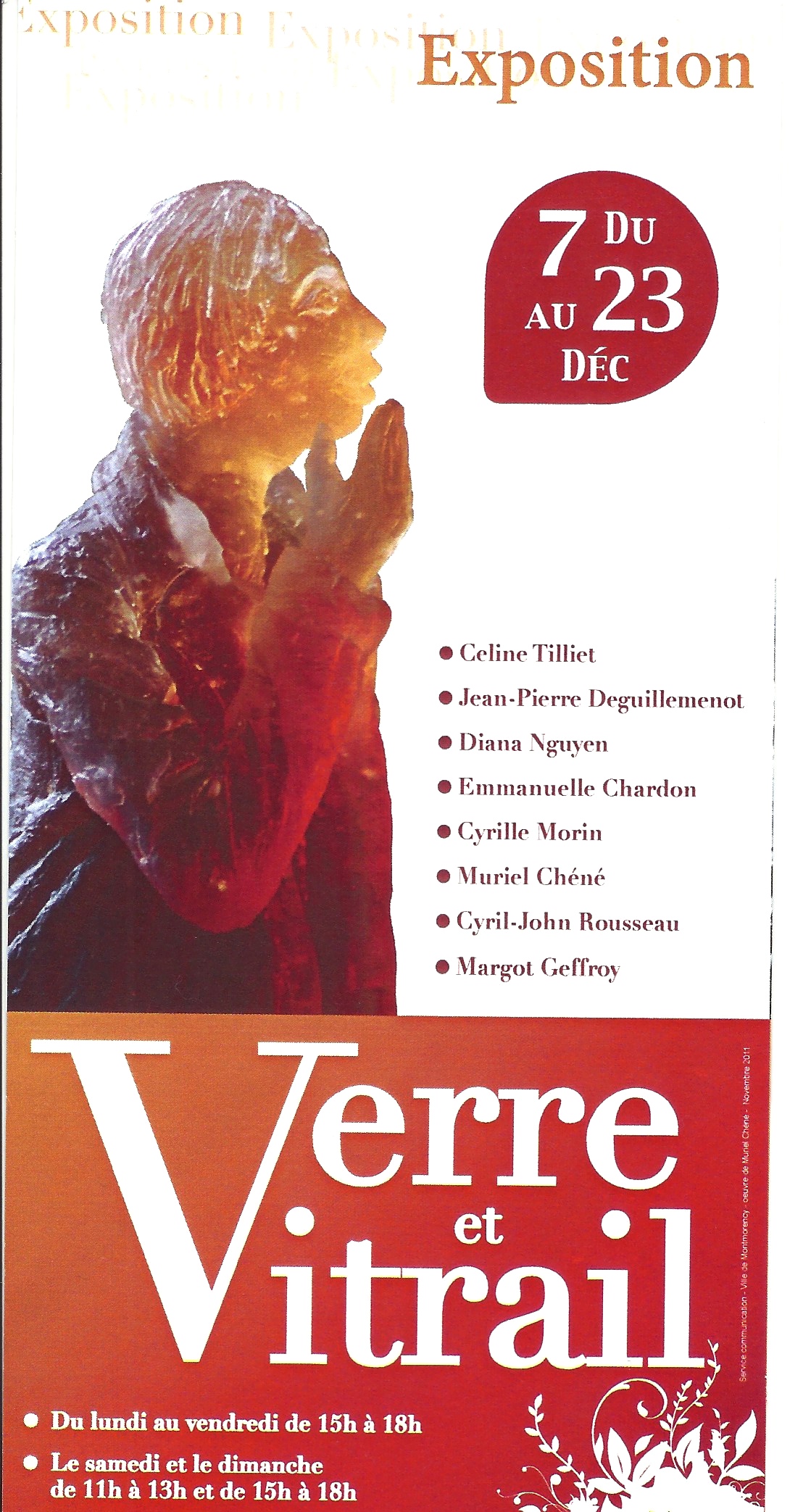 Seront présents : Céline Tilliet (sculptures en pate de verre), Jean-Pierre Deguillemenot (vitraux), Diana Nguyen (vitraux), Emmanuelle Chardon (vitraux et luminaires), Cyrille Morin (sculptures pate de verre), Muriel Chéné (sculpture en pâte de verre), Cyril-John Rousseau (verre soufflé, flacons) Margot Geffroy (verre soufflé, flacons).