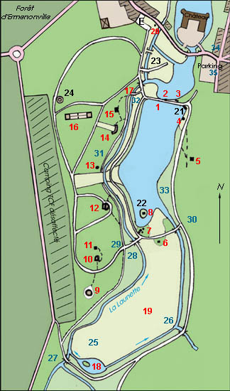 Nota : 1) la forme des étangs a sensiblement évolué, j’indique le tracé actuel.