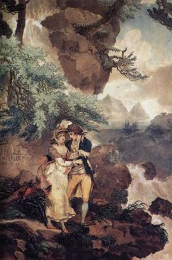 La description du voyageur s’attarde sur l’isolement, l’obscurité, la rudesse et le caractère inhospitalier des montagnes, autant de qualificatifs qui appartiennent au XVIIIème à la définition du sublime, principe à la fois ascendant et descendant. De plus, Saint Preux parle du « lieu sauvage » qui l’accueille pour observer la maison de Julie comme le promeneur solitaire évoquera les rives « sauvages et romantiques » du lac de Bienne à la cinquième promenade. Nous voyons se dessiner le lien de parenté qui existe entre l’esthétique du sublime et le romantisme, quelques années plus tard. Rousseau, dans ces lettres, invente en quelque sorte le romantisme. Il est le seul à faire correspondre de façon intime la nature et les états d’âme de l’homme. L’imagination de ce dernier permet cette harmonie, cette dilution de l’être dans l’univers. Grâce à elle, comme l’a expliqué Kant, l’homme est capable de tendre vers l’infini, de l’envisager mentalement et de le désirer. Saint Preux alors qu’il est exténué par la violence de ses sentiments avoue que sur la rive opposée où il croit apercevoir la demeure de Julie « (son) imagination donnait le change à (ses) yeux fatigués ». Le voyageur se laisse entièrement dominé par l’endroit où il se trouve, par le monde mental qu’il se crée à partir de lui. Cette soumission à l’espace est l’un des signes du sublime, qui dépossède l’homme de son être et lui permet d’être en osmose parfaite avec la nature. Comme nous l’avons déjà dit, l’état d’esprit du voyageur influe sur la perception de ce qui l’entoure. Ainsi, Rousseau lui-même explique dans l’une des lettres sur la Suisse que « l’impression commune de tout cela (…) dépend de l’état où nous sommes en le contemplant. Ce tableau, quoique toujours le même, se peint d’autant de manières qu’il y a de dispositions différents dans les cœurs des spectateurs ; et ces différences, qui font celles de nos jugements, n’ont pas lieu seulement d’un spectateur à l’autre, mais dans le même en différents temps. »35