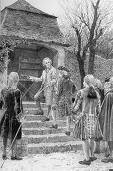 Cette estampe représente Rousseau recevant le maréchal de Luxembourg dans le « Donjon » de Montmorency. D’après M. Leloir, 1889. Musée J-J Rousseau. Montmorency