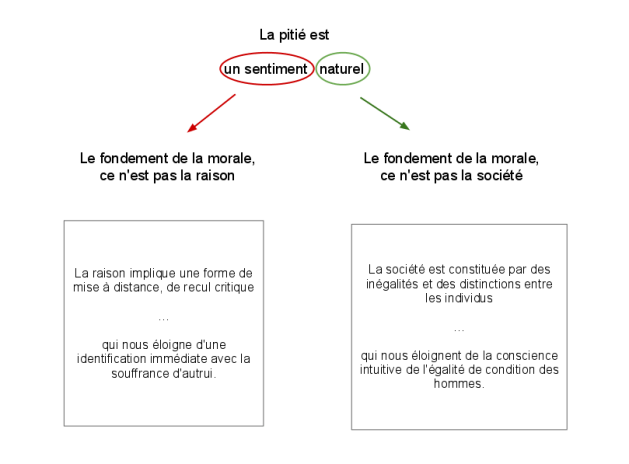 Tel est le pur mouvement de la nature, antérieur à toute réflexion : telle est la force de la pitié naturelle, que les mœurs les plus dépravées ont encore peine à détruire […]. Mandeville a bien senti qu’avec toute leur morale les hommes n’eussent jamais été que des monstres, si la nature ne leur eût donné la pitié à l’appui de la raison. […]